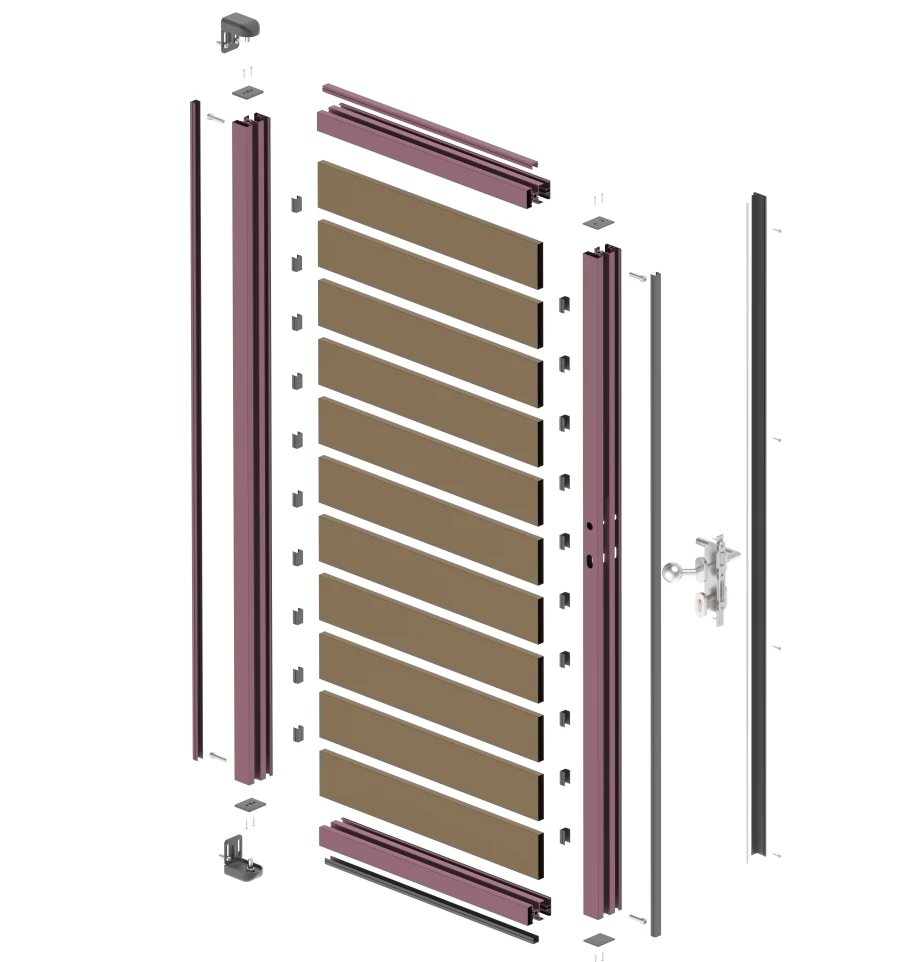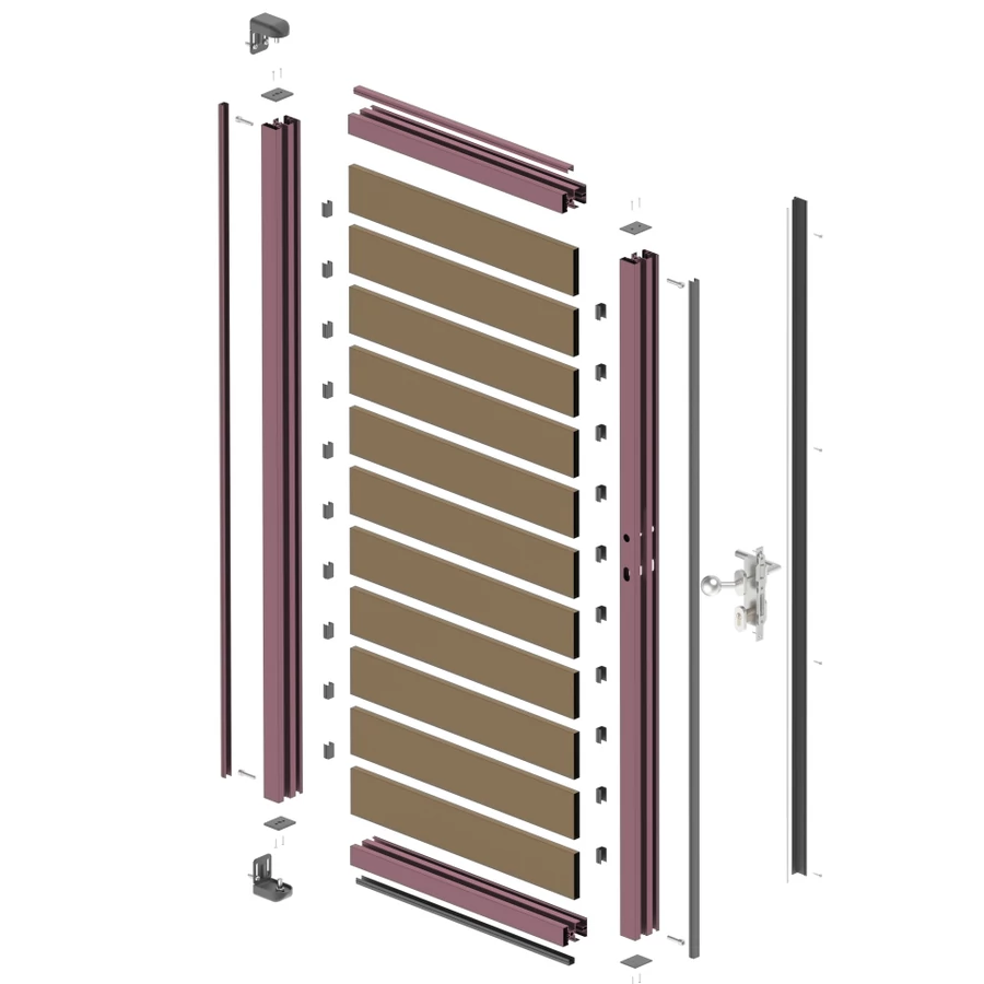 Alumínium kiskapu, lapra szerelt változat. A magasság és a szélesség alap mérete 100x185cm.